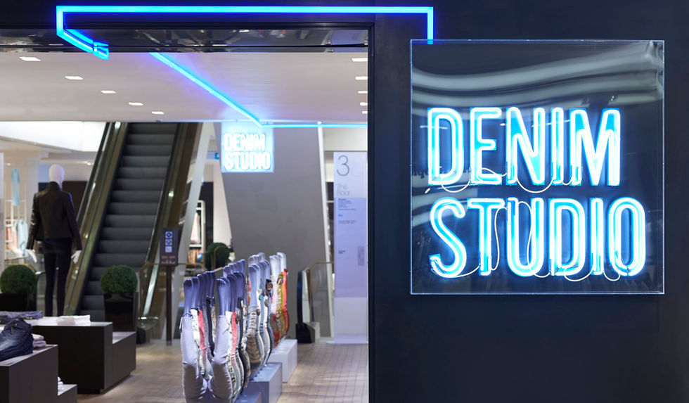 supported by generous fitting rooms with call buttons; a denim tailor with same day turnaround and an interactive digital table showcasing the latest in denim trend.